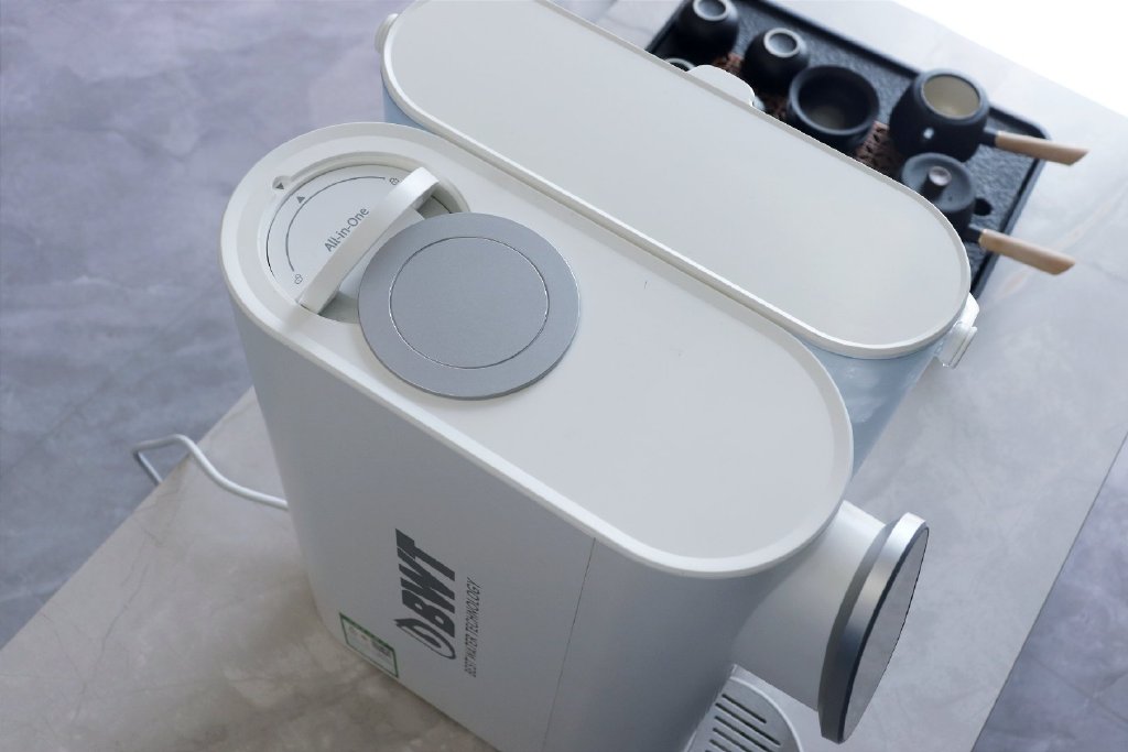 BWT倍世畅享即热净饮机采用除了外置6L的原水箱,它内部还拥有一个1.2L的净水箱。而接水的时候,它的沥水盘采用磁吸的方式,也是便于我们搬运组装。